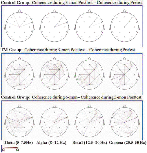 You can see on the top is the control group, the group that learned TM three month later, and the bottom group, this is the amount of increase brain functioning, and this is with the eyes open.