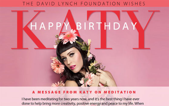 "Transcendental Meditation changed my life. For my birthday I would love to pay it forward. In lieu of gifts, donate to www.davidlynchfoundation.org/katyperry."