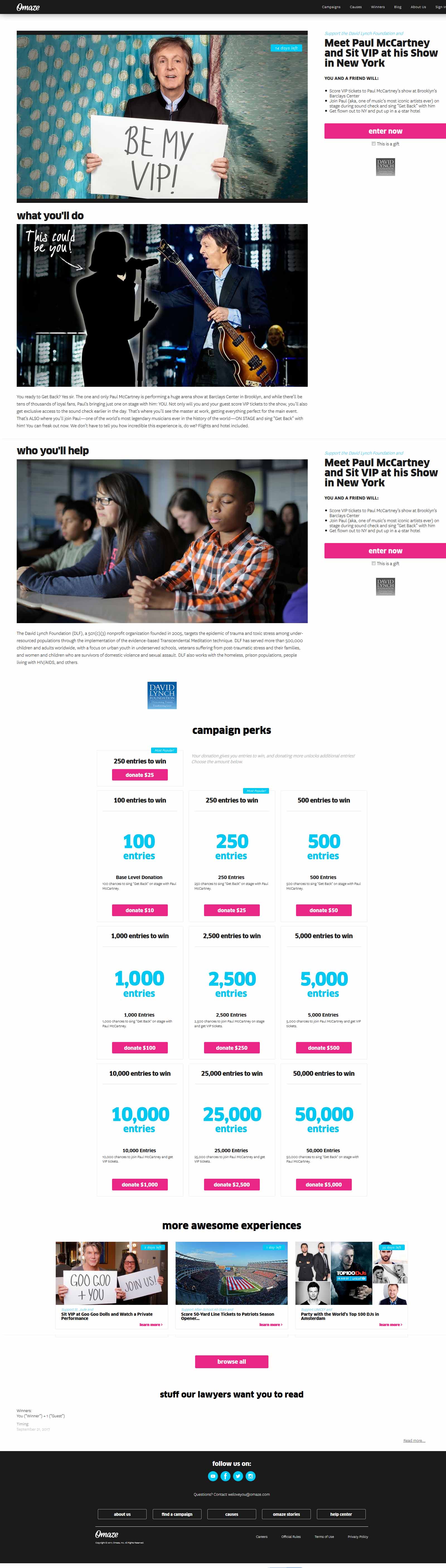 Le parrain est Omaze, Inc., le bénéficiaire est la Fondation David Lynch (Oeuvre caritative).