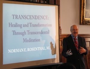Le Dr Rosenthal, pionnier dans l'utilisation de la luminothérapie dans le traitement de la dépression saisonnière (au cours de ses 20 années de carrière en tant que chercheur principal à l'Institut national de la santé mentale aux Etats-Unis), a décrit comment il avait personnellement découvert la valeur de la Méditation Transcendantale assez tard dans la vie , et comment il a vu cette méditation transformer la vie de ses patients.