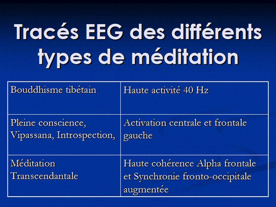 Leurs constations sont également basées sur des enregistrements et des tracés EEG différents selon ces trois types de pratiques.